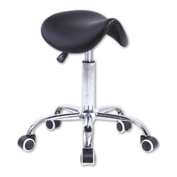 The telescopic frame allows height adjustment from 67–94 cm, and the padded panel tilts up to 180°, enabling ergonomic positioning for various tattoo placements. The anti-slip levelers can also be adjusted by 2 cm for added stability.