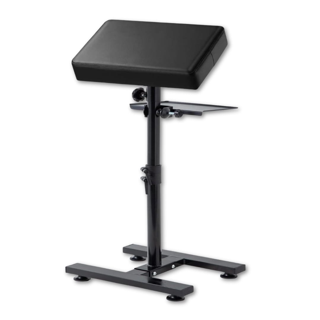 The Andnice Tattoo Armrest combines stability, comfort, and versatility for professional tattoo artists. Built with a robust H-shaped base and four height-adjustable non-slip levelers, it ensures a secure setup on any floor. An integrated removable storage board (24 × 18 cm) attaches to the telescopic tube, keeping essential tools close at hand.