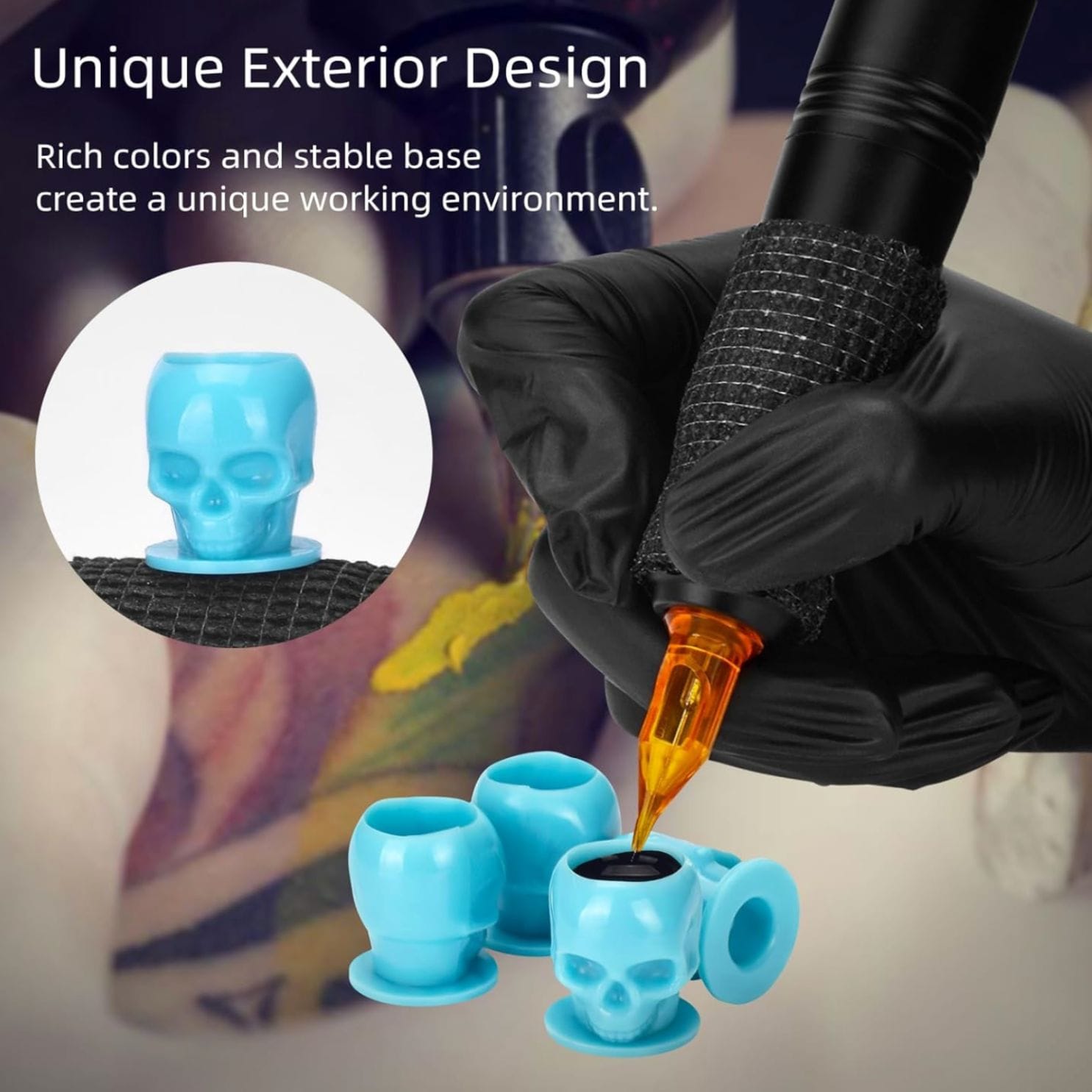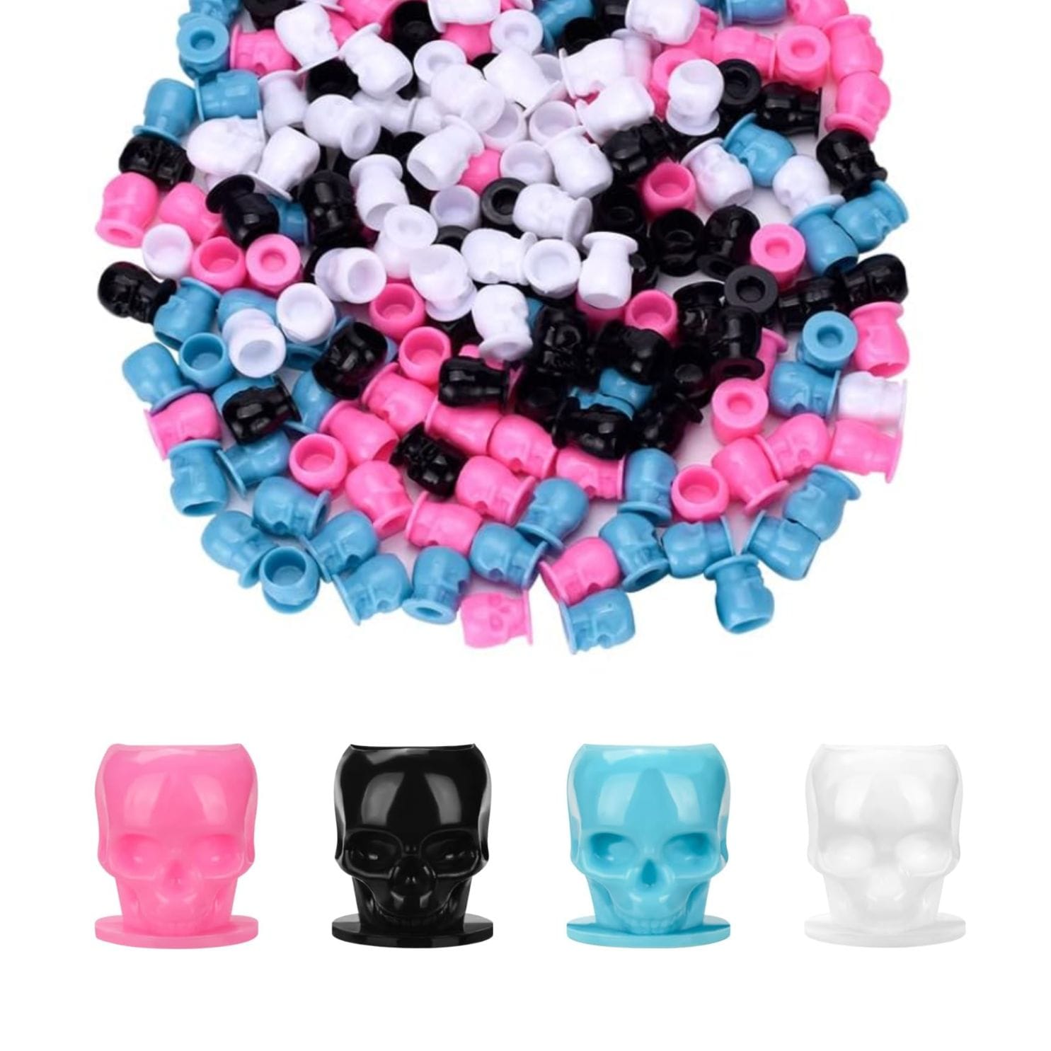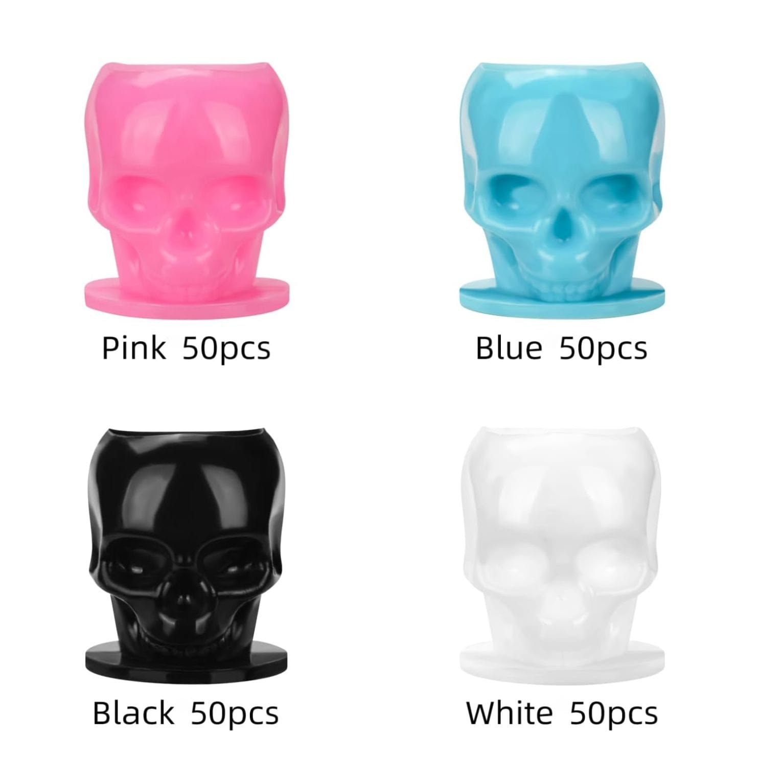 - Package contains: 50 White, 50 Pink, 50 Blue, 50 Black skull design tattoo ink cups.
