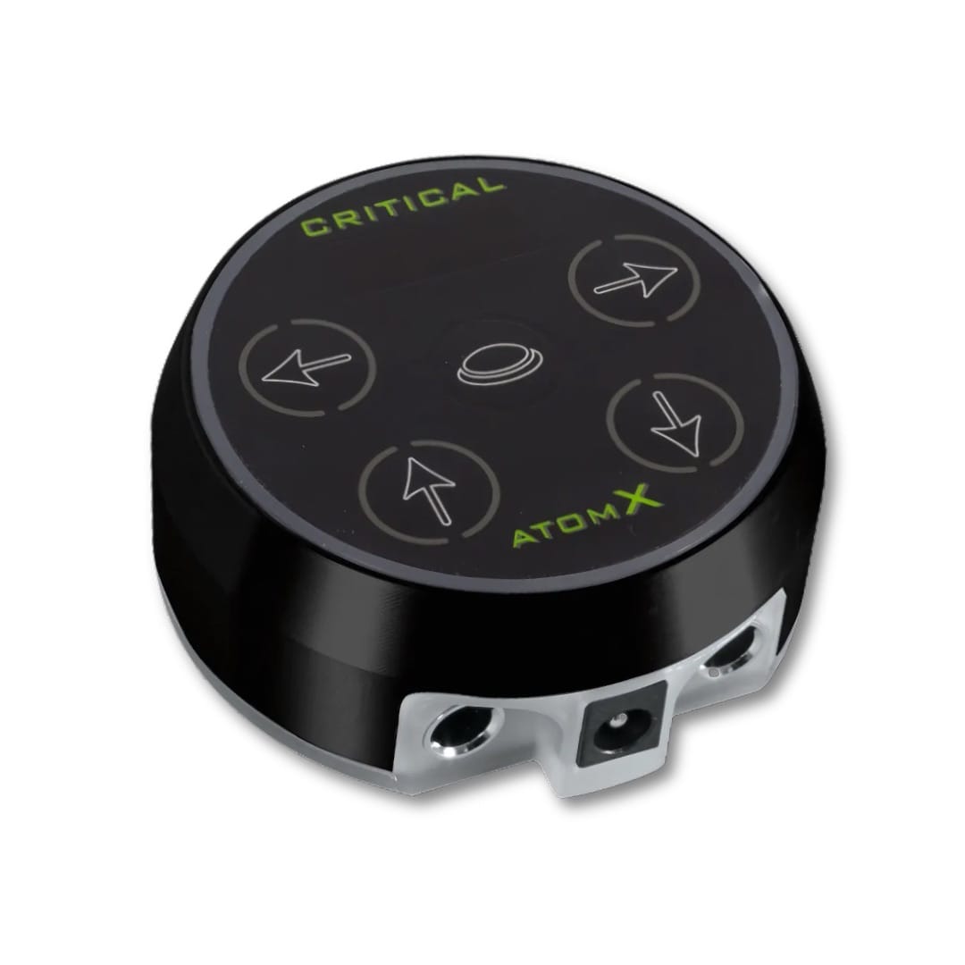 The Critical AtomX in Black is a compact, high-performance tattoo power supply designed for professional tattoo artists who value precision, ease of use, and versatility. Engineered by Critical, a trusted name in tattoo equipment, the AtomX combines intuitive functionality with advanced features, making it an essential addition to any tattoo workstation.