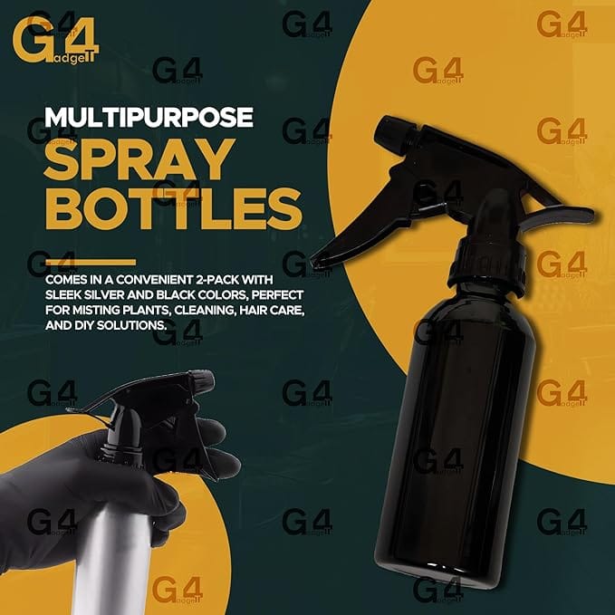 Multipurpose Use—2-pack of 200ml spray bottles in sleek silver and black