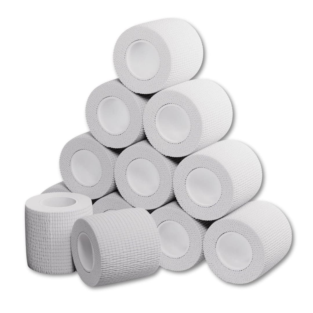 White Self-Adherent Grip Wrap Tape – 50mm x 4.5m (Box of 12 Rolls)